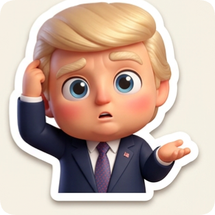 Chibi sticker pack generator featuring a confused cartoon man in a suit with blonde hair and a tie.