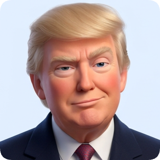 Pixar expression single sticker pack generator featuring a cartoon portrait of Donald Trump with a slight smirk.