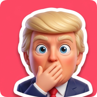 Emoji reaction sticker pack generator featuring a surprised Donald Trump character with his hand over his mouth.