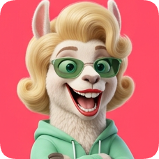 Custom cm llama character with blonde hair, sunglasses, and a green hoodie smiling broadly against a pink background.