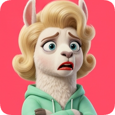 Custom cm llama character with blonde curly hair and a worried expression, wearing a green hoodie.