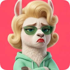 Custom cm llama character with blonde hair and sunglasses looking unimpressed against a pink background.