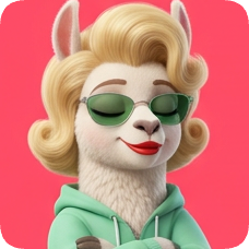 Custom cm llama character with blonde retro hairstyle, sunglasses, and a mint green hoodie, looking cool and confident.