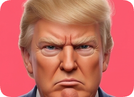 Custom 3D caricature portrait of Donald Trump with a stern expression against a pink background. cm 3d caricature portrait