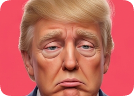 Custom 3D caricature portrait of a sad-looking Donald Trump with a pink background. cm 3d caricature portrait