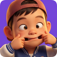 Pixar 3D cartoon boy, an American all-star boy, makes a funny face while pulling his cheeks with his fingers. american all star boy