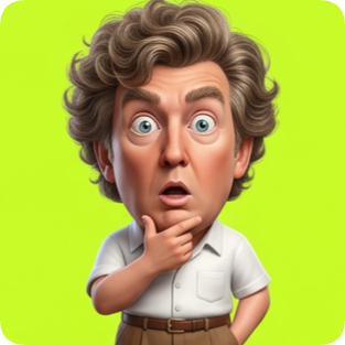 Custom 3D caricature transformation of a man with curly hair and a surprised expression against a bright green background. cm 3d caricature transformation