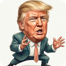 Custom CM KR GER caricature of Donald Trump in a suit with exaggerated features and a dynamic pose. cm kr ger caricature einstein