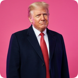 Custom CM artist Spotify portrait of Donald Trump in a suit against a bright pink background.