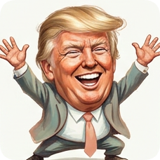 Custom CM KR GER caricature of a laughing Donald Trump with arms raised in a celebratory pose. cm kr ger caricature einstein
