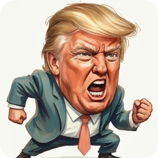 Custom CM KR GER caricature of an angry Donald Trump with a clenched fist and open mouth. cm kr ger caricature einstein