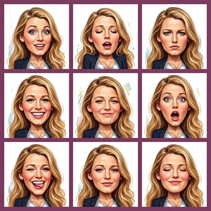 Build expressive sticker grids with punchy emotions and clean 3D polish.
