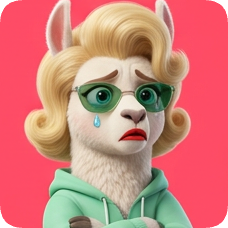 Custom cm llama character with blonde curly hair, green sunglasses, and a sad expression with a tear.