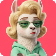 Custom cm llama character with blonde hair, green sunglasses, and a mint green hoodie looking unimpressed.
