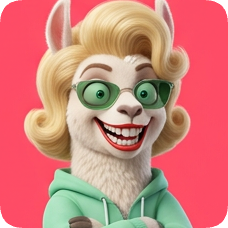 Custom cm llama character with blonde hair, green sunglasses, and a mint green hoodie, smiling broadly against a pink background.