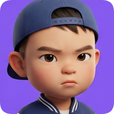 Pixar 3D cartoon boy with an American all-star boy style, sporting a blue baseball cap and a determined expression. american all star boy