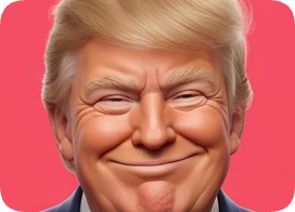 Custom 3D caricature portrait of Donald Trump with a playful expression against a vibrant pink background. cm 3d caricature portrait