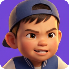 Pixar 3D cartoon boy with an American all-star boy expression, wearing a blue baseball cap and jacket. american all star boy