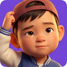 Pixar 3D cartoon boy, an American all-star boy, wears a baseball cap and jacket with a thoughtful expression. american all star boy