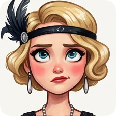 Custom CM Engelbreit deco flapper caricature of a blonde woman with blue eyes and a feathered headband.
