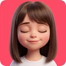 Custom CM Pixar style 3D avatar grid featuring a smiling girl with closed eyes and brown hair on a pink background.