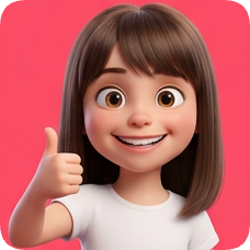Custom CM Pixar style 3D avatar grid features a happy cartoon girl giving a thumbs up gesture.