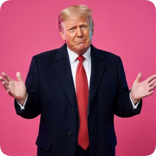 Ver em tamanho grandeCustom CM artist Spotify portrait of Donald Trump shrugging with a pink background.Efeito: customEstilo: cm_artist-spotify-portraitPostagem: b21fe8...-313Publicado em 2026-03-11 03:43Abrir página do visualizador
