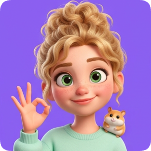Custom CM Pixar girl sticker sheet featuring a smiling blonde girl with a hamster on her shoulder giving an okay sign.