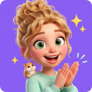 Custom CM Pixar girl sticker sheet featuring a smiling girl with a hamster on her shoulder and sparkling stars.