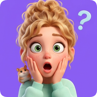Custom CM Pixar girl sticker sheet featuring a surprised girl with a hamster and a question mark.
