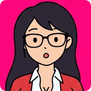 Custom cm doodle vector portrait 2 of a surprised woman with glasses and dark hair wearing a red jacket.
