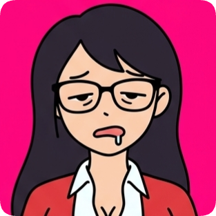 Custom cm doodle vector portrait 2 of a tired woman with glasses and drool against a bright pink background.