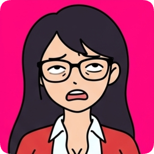Custom cm doodle vector portrait 2 of a woman with glasses looking tired against a bright pink background.