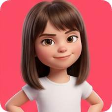 Custom CM Pixar style 3D avatar grid showcases a smiling young girl with brown hair and a white t-shirt.